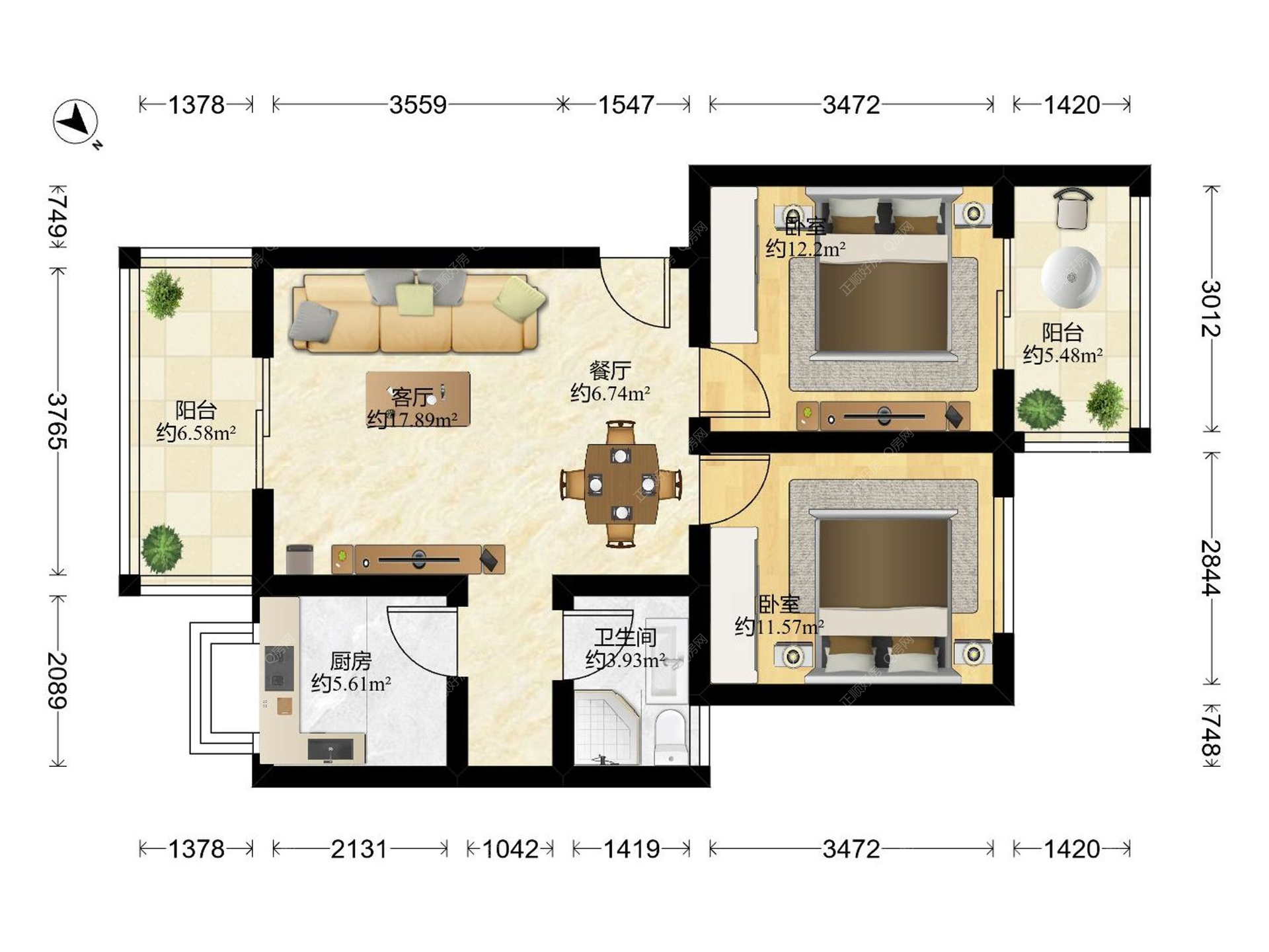 2房2厅1卫