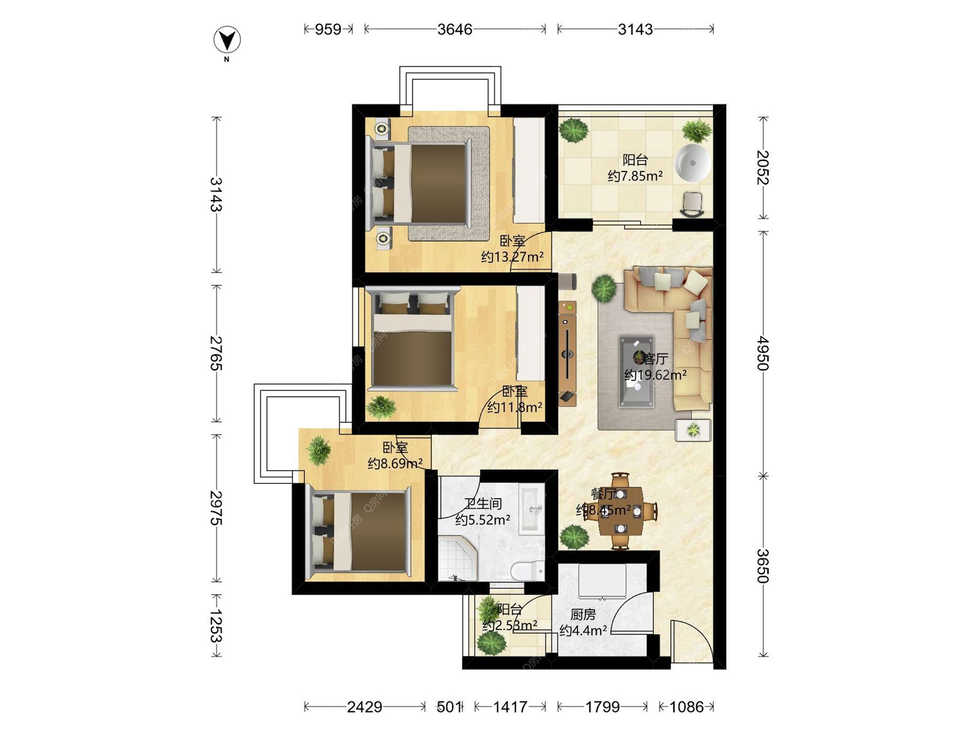 3房2厅1卫
