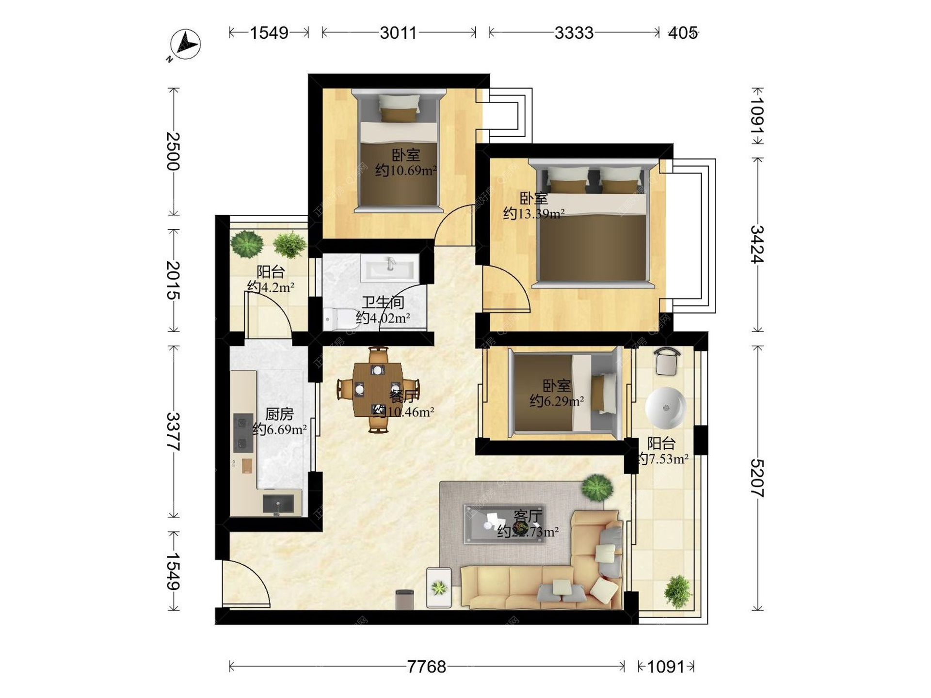 3房2厅1卫