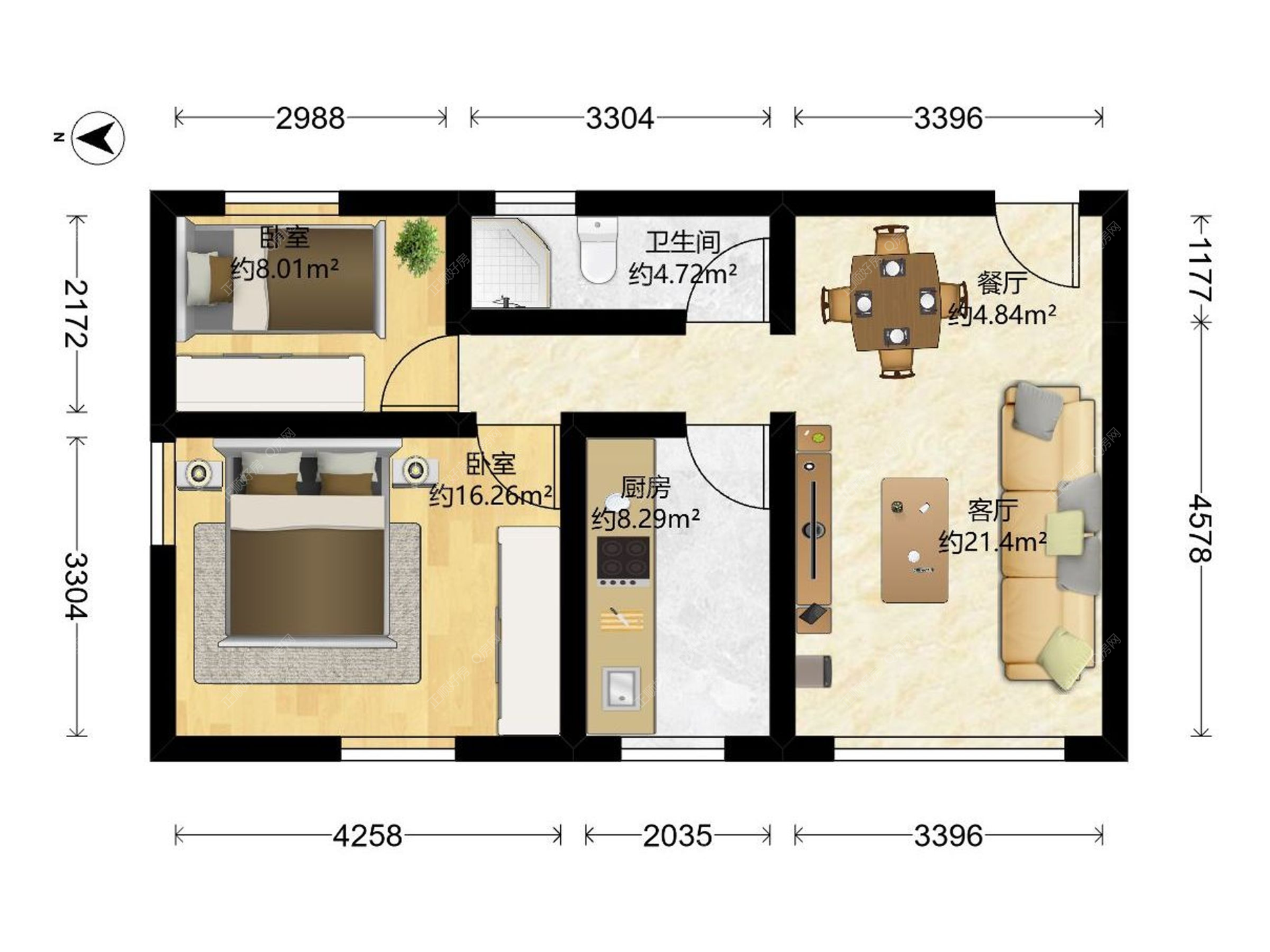 2房2厅1卫