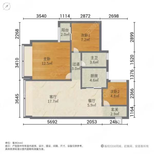 3房2厅1卫