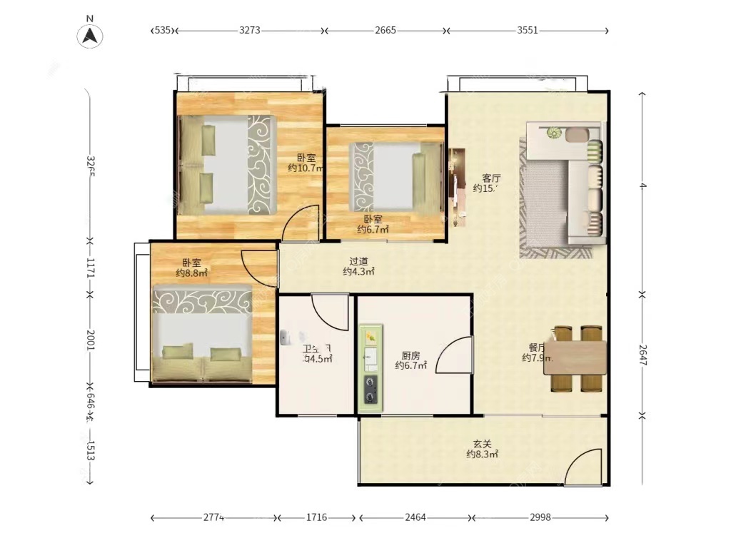 3房2厅1卫