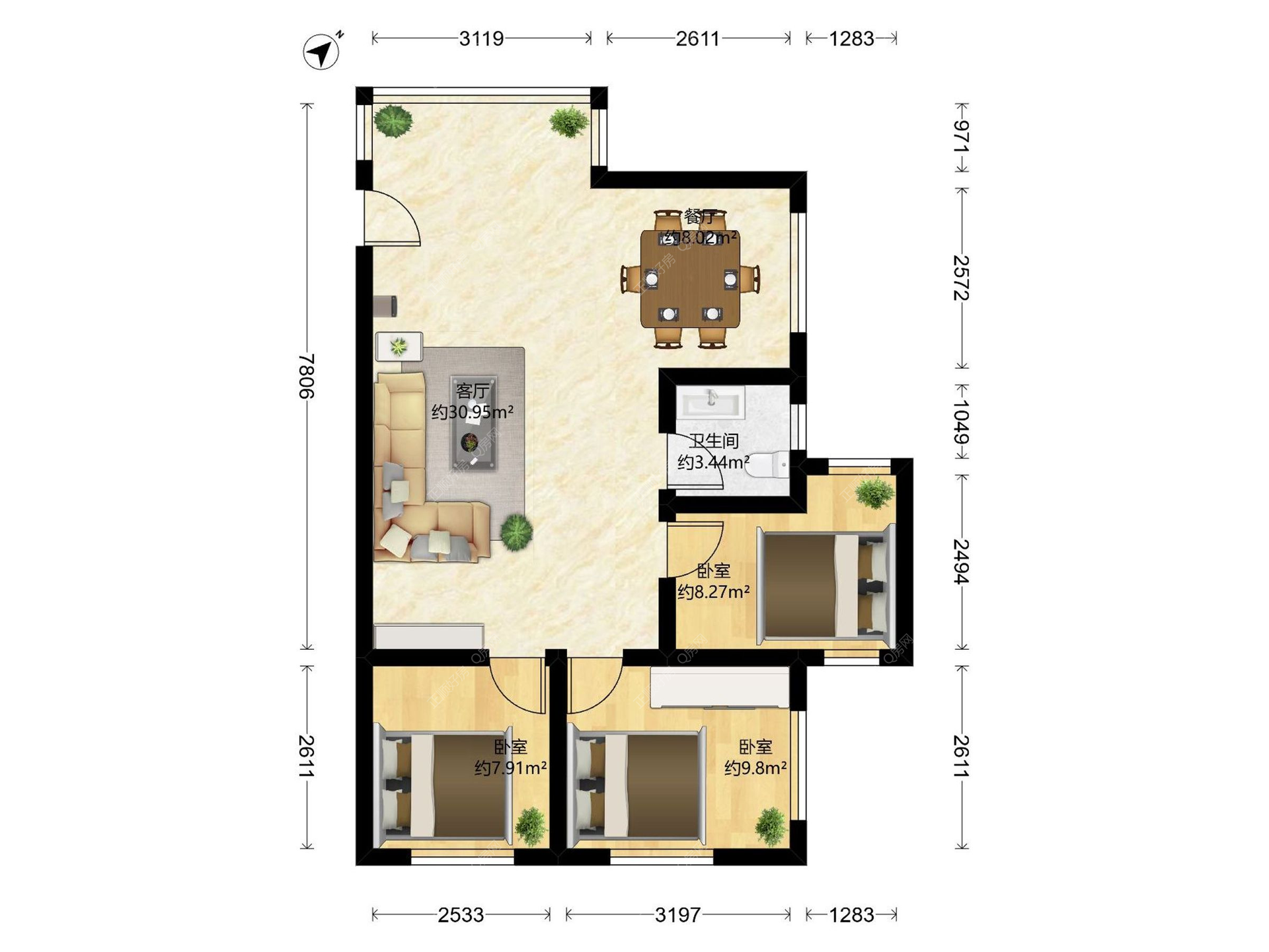 3房2厅1卫