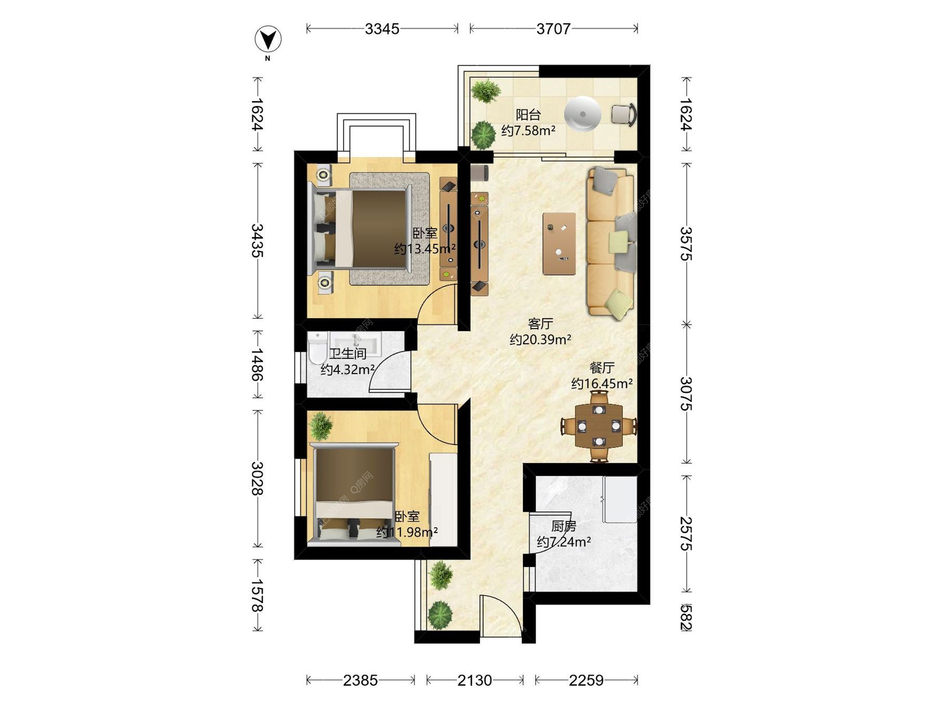 2房1厅1卫