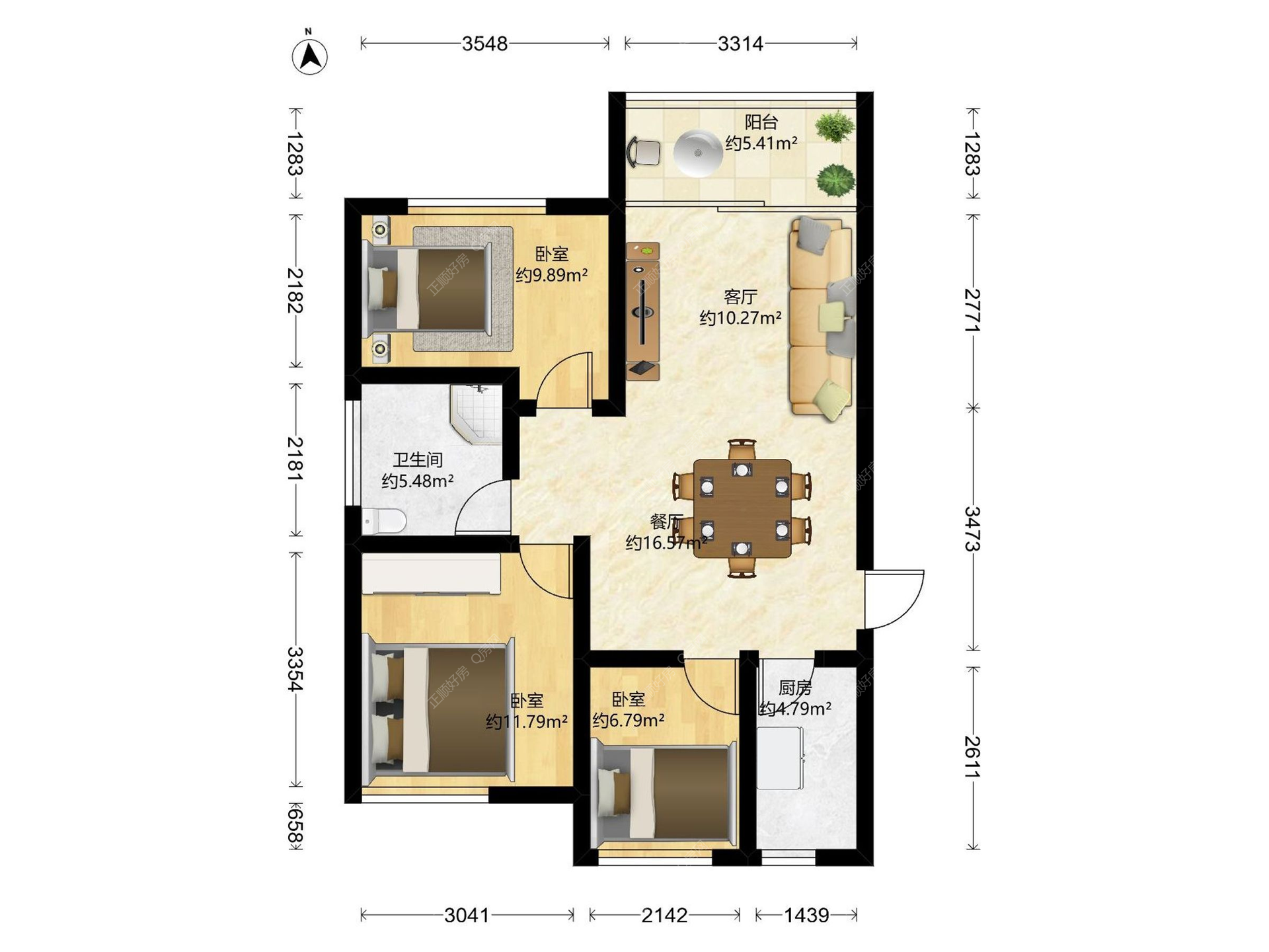 3房2厅1卫