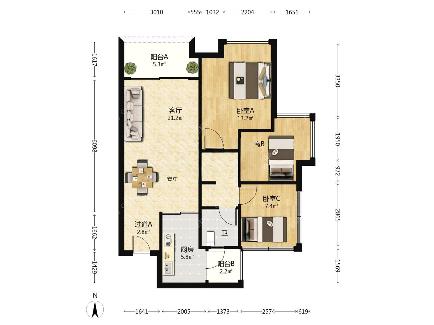 3房2厅1卫