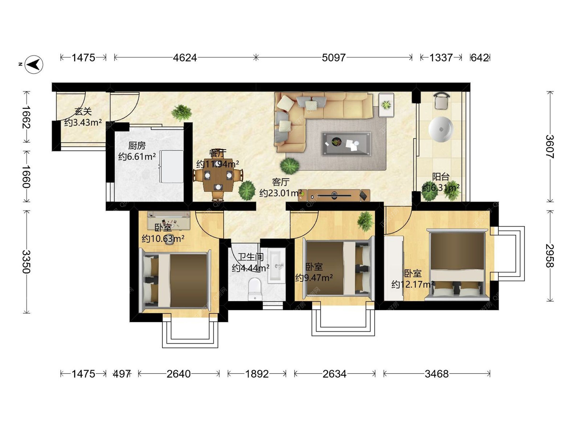 3房2厅1卫