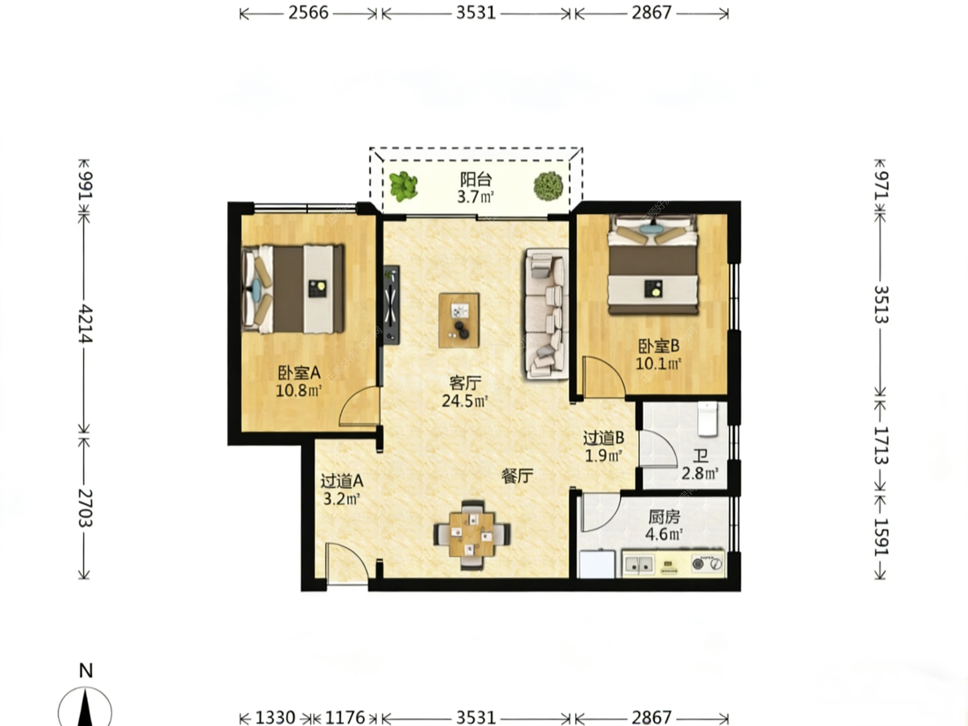 2房2厅1卫