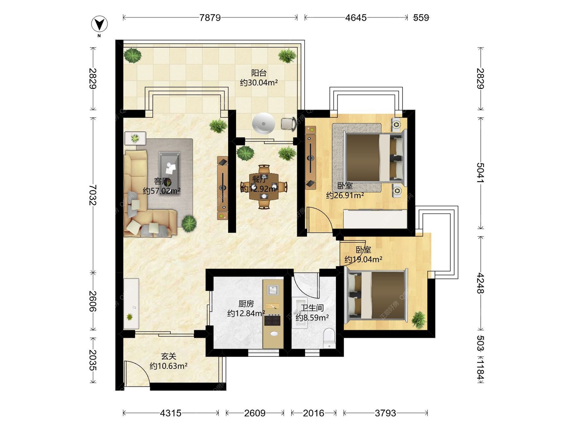 华发世纪城四期 89㎡3房2卫 格局方正 带大阳台