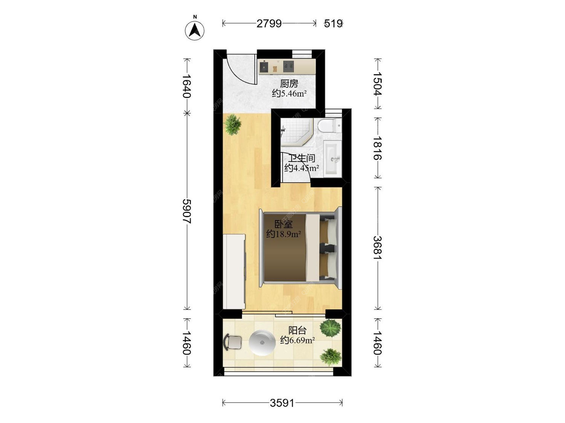 1房0厅1卫