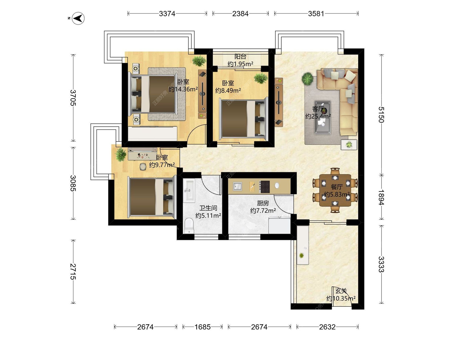 3房2厅1卫