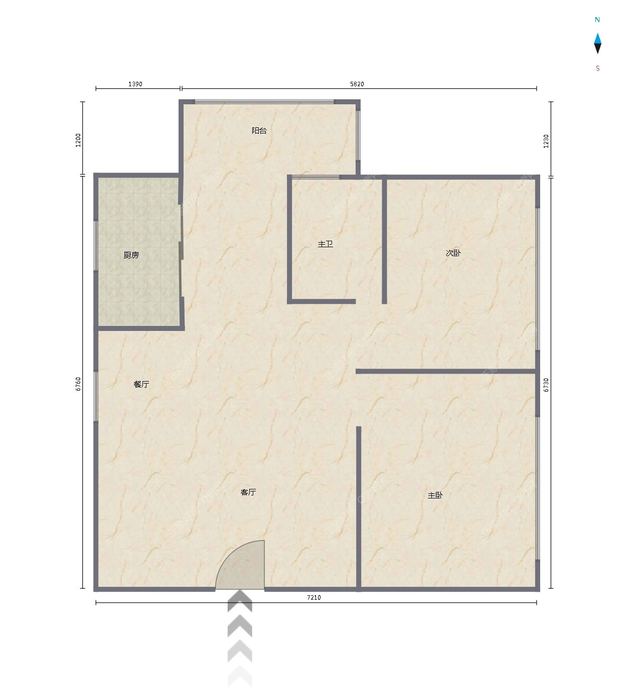 3、此房的房间干湿布局合理,两房两厅一阳台,动静分区明确,理想的住家首选户型。