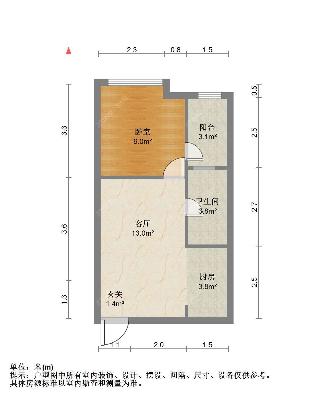 【户型优势】 单间公寓一房一卫一阳台 带阳台朝北 无遮挡采光很好
