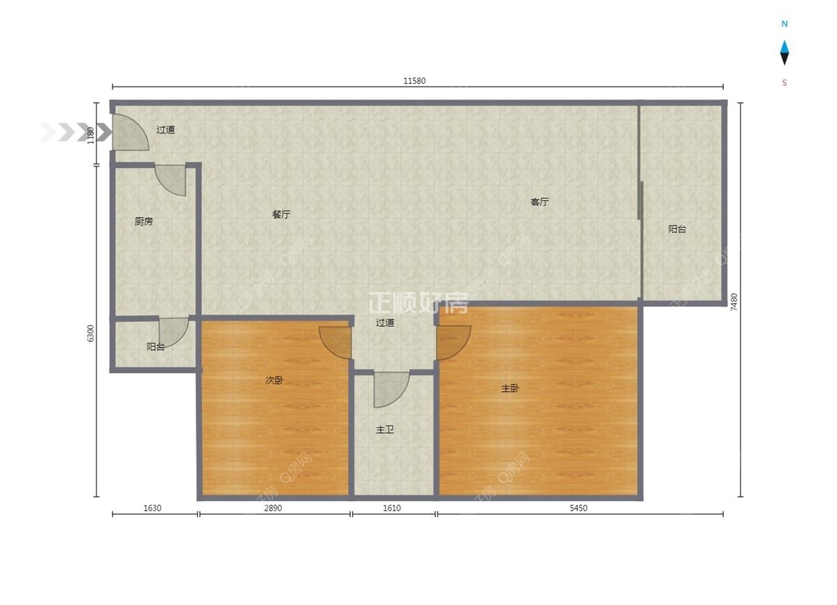朝向:厅朝西南,主次卧都朝西南