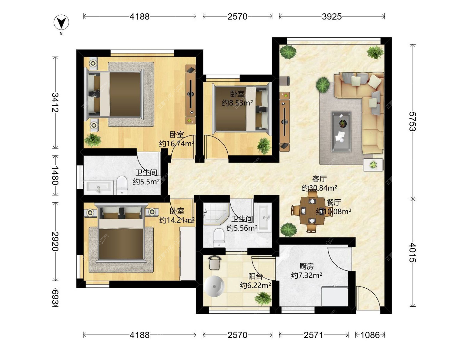 3房2厅1卫