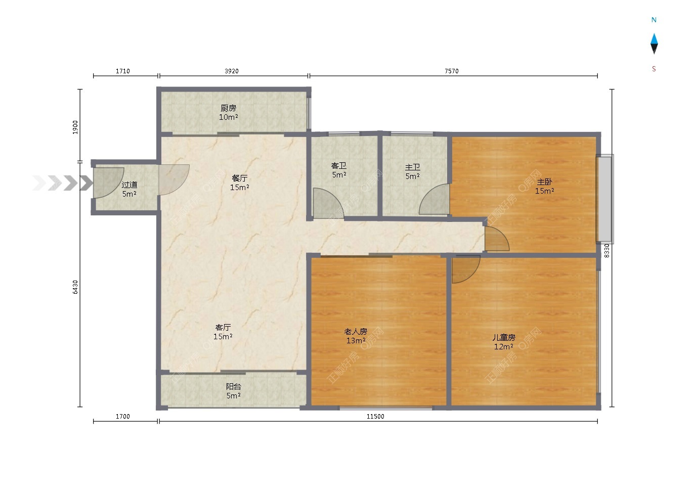 2、房子为标准三房,格局方正,通风采光好。