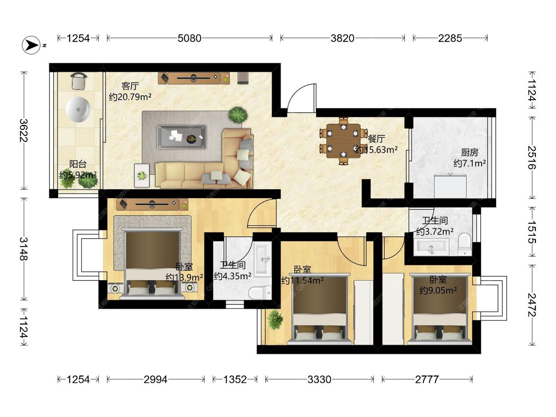 1)实用型3房,要求住家爱干净,3个卧室都带空调,另加平台100平方