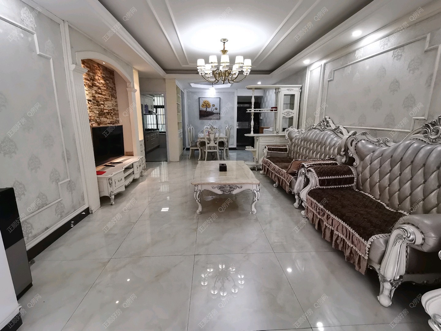 房子业主自己住,全新装修,欧式风格,拎包入住。大三房117平方!