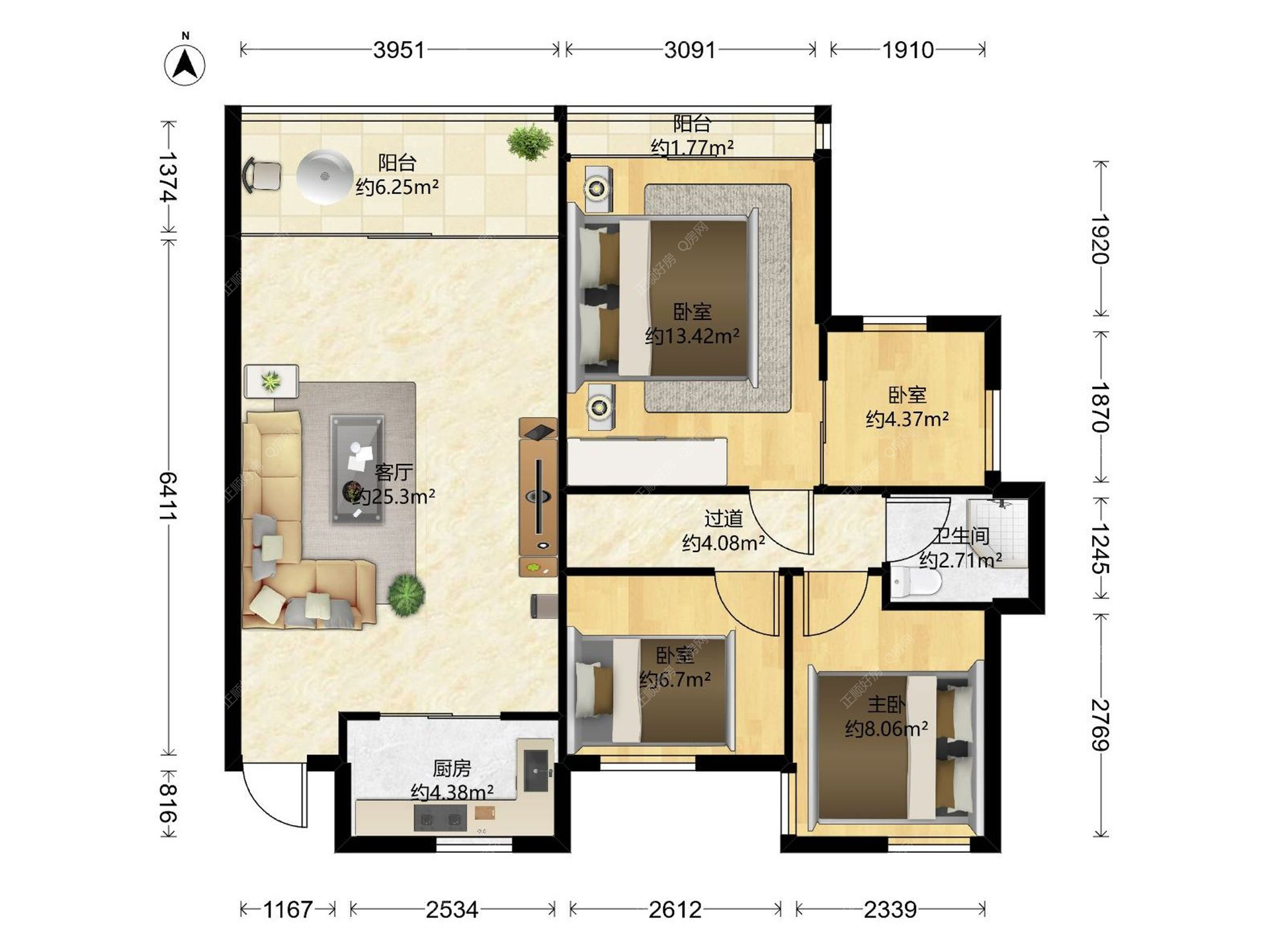 3房2厅1卫