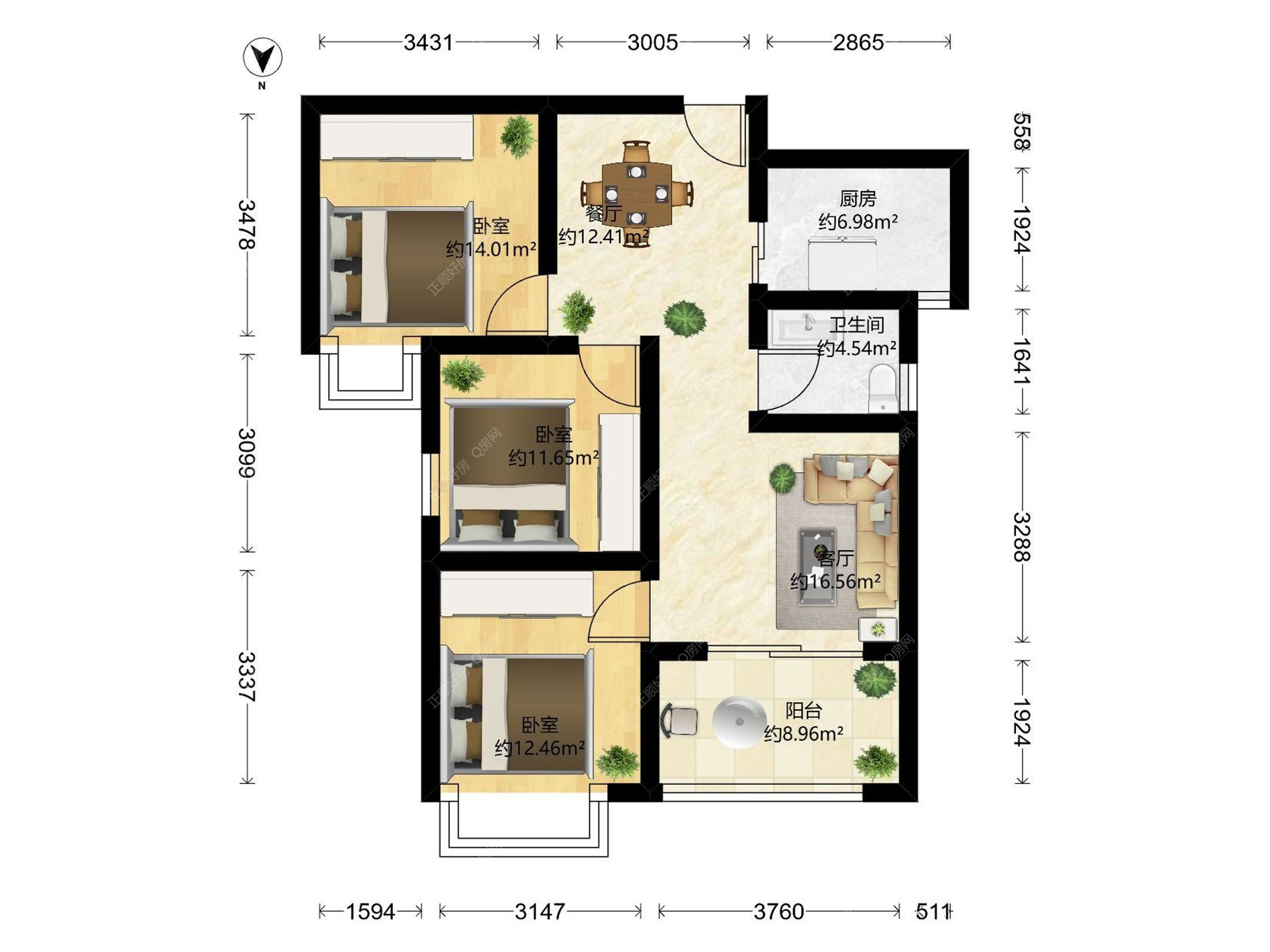 3房2厅1卫