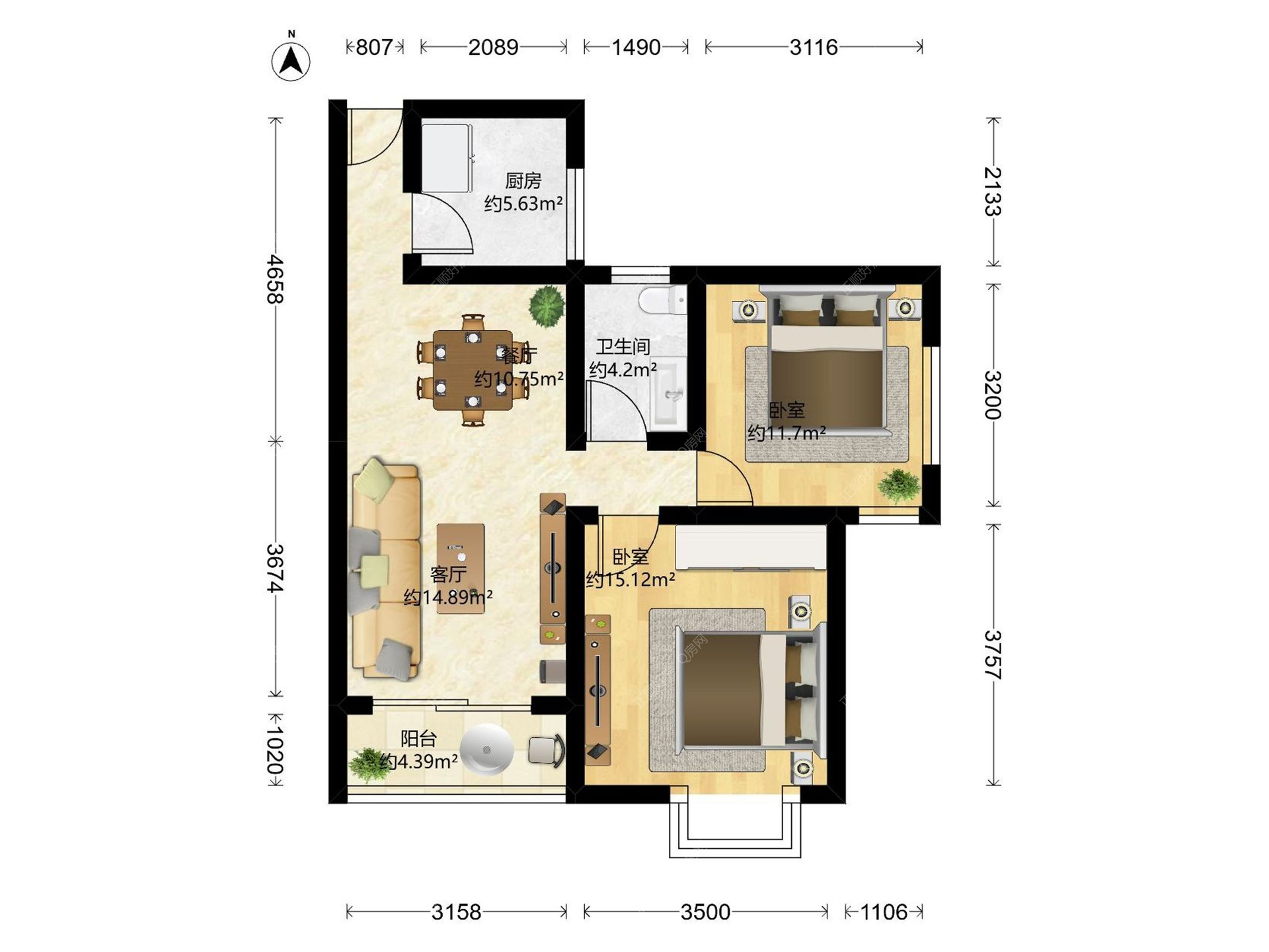 2房2厅1卫