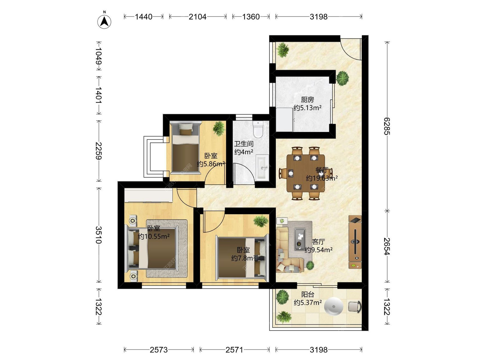 3房2厅1卫