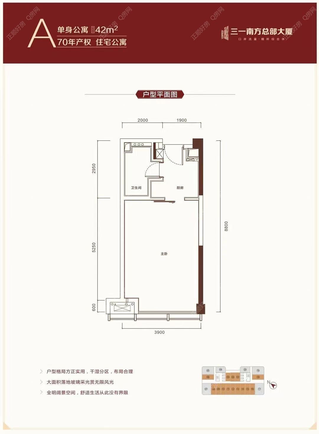 横琴 三一南方总部大厦 42㎡ 1房0厅 向