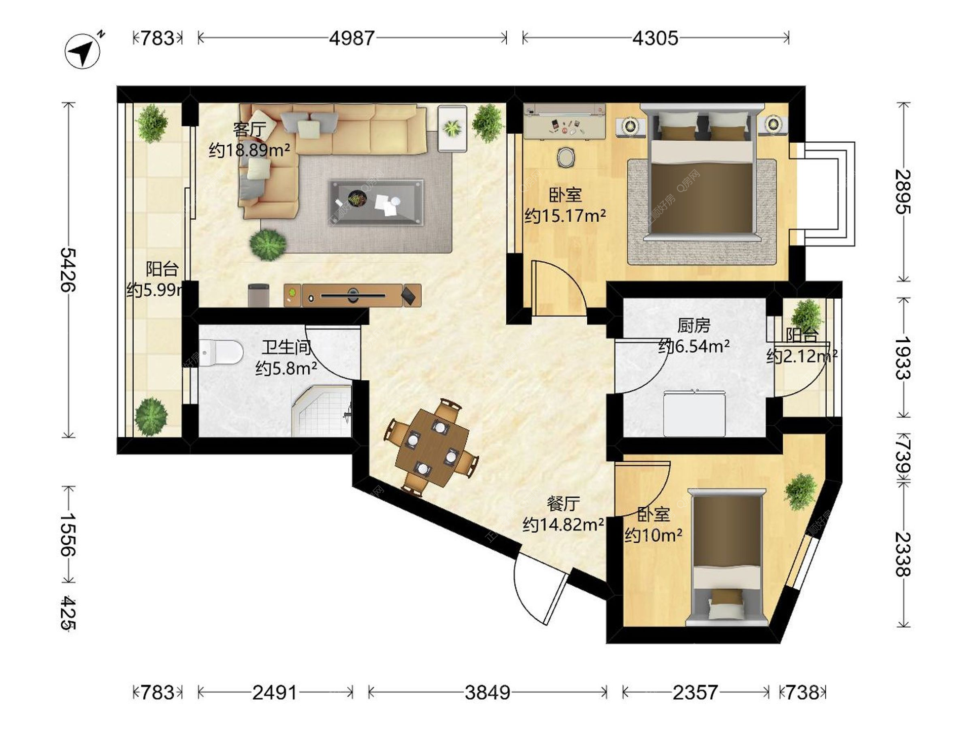5、房间布局合理,两房朝南,一房朝东,动静分区明确,干湿布局合理,理想的住家首选户型。